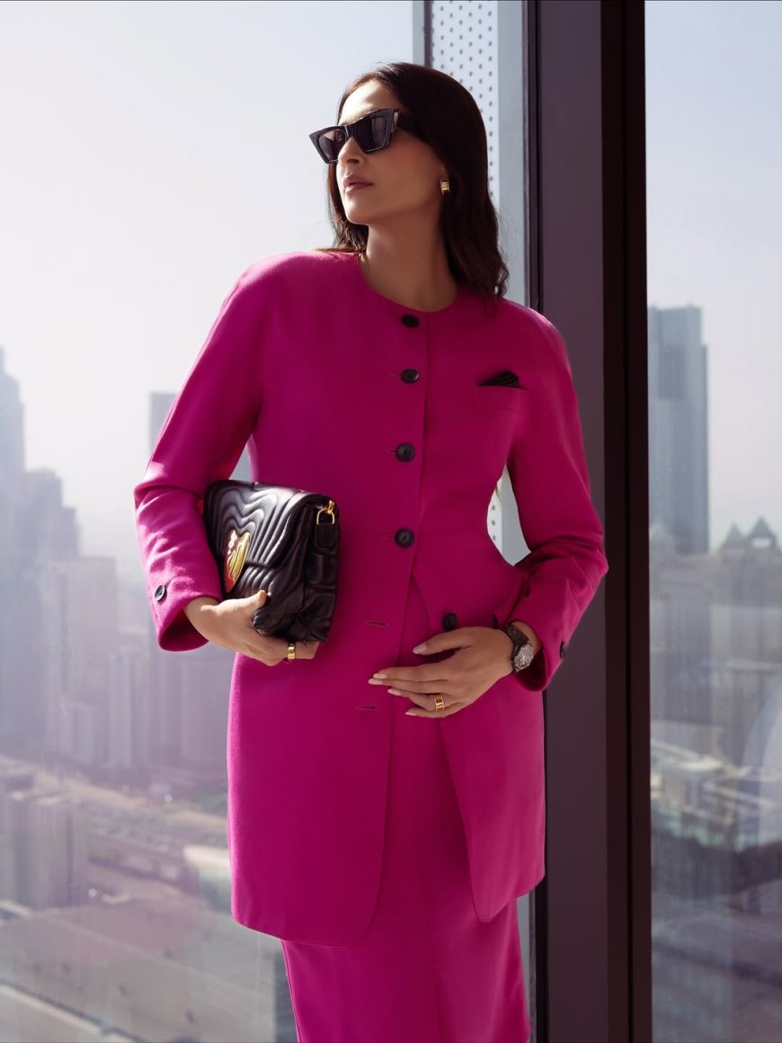 सोनम ने अपनी तस्वीरों में पिंक कलर के बॉसी लुक में नजर आईं, जिसमें उनके चेहरे पर प्रेग्नेंसी का खूबसूरत ग्लो साफ दिखाई दे रहा था। उन्होंने बेबी बंप के साथ क्लासी और एलीगेंट अंदाज में कई तस्वीरें पोस्ट कीं। तस्वीरों में उनके चेहरे पर एक अलग सा आकर्षण और ताजगी नजर आ रही थी, जो उनके फैंस को बहुत भा रही है।